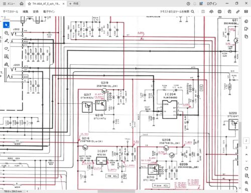 続き ma2electron.hatenadiary.jp 2号機の方を開けてみたが、T5Vが出てこない原因を当たる。 Q219のコレクタから5Vが出てない。 ベースとエミッタは12V前後。 パターン図がこんな状態のものしかなくて部品が見つからないが、Q219とQ218は隣同士に配置されて…