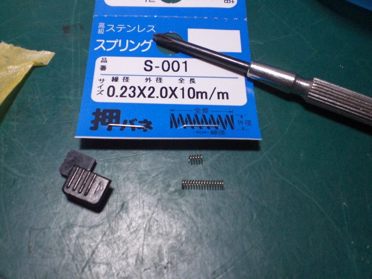 先日のIC-R1で紛失したバッテリーパックのロックつまみのバネをヨドバシから購入。